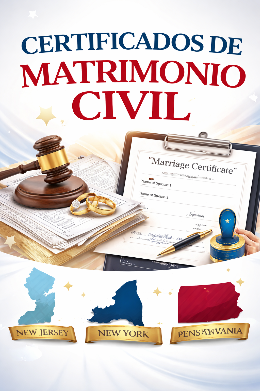 ✔ Oficiante autorizado en NJ, NY y PA ✔ Certificación notarial incluida ✔ Válido para trámites migratorios ✔ Servicio estándar y urgente 24H disponible